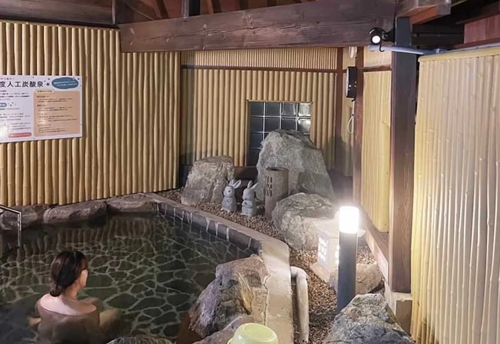 距離出雲緣結機場約 15 分鐘車程,被譽為中國地方最大級的溫泉設施。館內使用不加水、不加溫的 100% 天然源泉直流溫泉,設有宛如庭園般、約 50 坪的岩造露天風呂,以及可獨享的一人用露天浴槽,另有室內浴池與三溫暖。入夜後,一邊仰望滿天星斗、一邊泡湯放鬆,格外愜意。