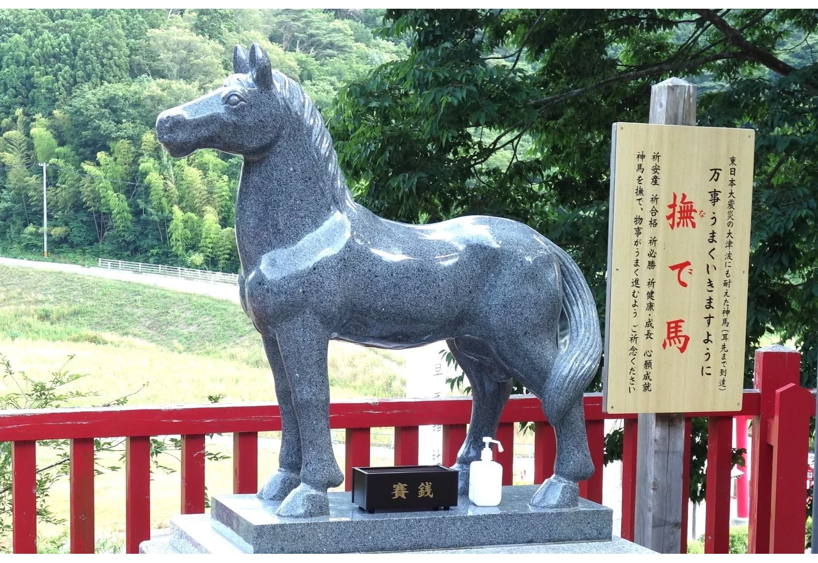 由於附近設有日本中央競馬會的訓練中心,因此吸引了眾多騎師、教練、馬主及賽馬愛好者前來祈求必勝,十分熱鬧。參拜後,不妨領取一面鑲有真實馬蹄的「馬蹄繪馬」,或以奔馳之馬為裝飾的「勝馬守」,為自己的運勢添上力量與祝福。