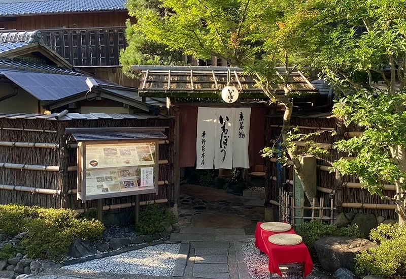 使用京都產海老芋與北海道產棒鱈燉煮而成的「芋棒」,可在招牌的「芋棒御膳」中品嚐到,深受觀光客喜愛。套餐中還能享用祇園豆腐、生湯葉刺身等充滿京都風味的料理。店內保留了自江戶時代創業以來的歷史風貌,洋溢著典雅的京都情調,設有椅子座位與榻榻米包廂,另備有於享用懷石料理時可使用的特別包廂。