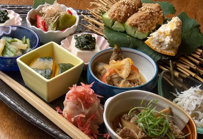 其中最受歡迎的莫過於能一次品嚐多種風味的「御番菜綜合拼盤」。除了每日更換的御番菜,店內還提供豐富多樣的料理與廣受好評的每日精選日本酒。二樓則備有兩間規格不同的獨立包廂。