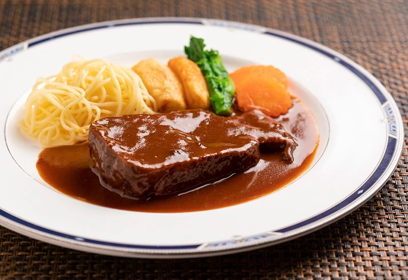 最受歡迎的「豬五花燉肉咖哩烏龍麵」之外,還有鋪上口感柔嫩炸雞天婦羅的「雞天咖哩烏龍麵」等,風格各異、各具特色的菜單選擇相當豐富。