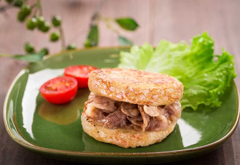推薦邊走邊吃的美味小點則是「島根和牛結緣米漢堡」。這款米漢堡使用島根縣雲南市出產的越光米,搭配以店家自製醬料調味的多汁島根和牛,米香與肉香完美融合,Q彈的口感令人回味無窮,是參拜途中補充能量的絕佳選擇。