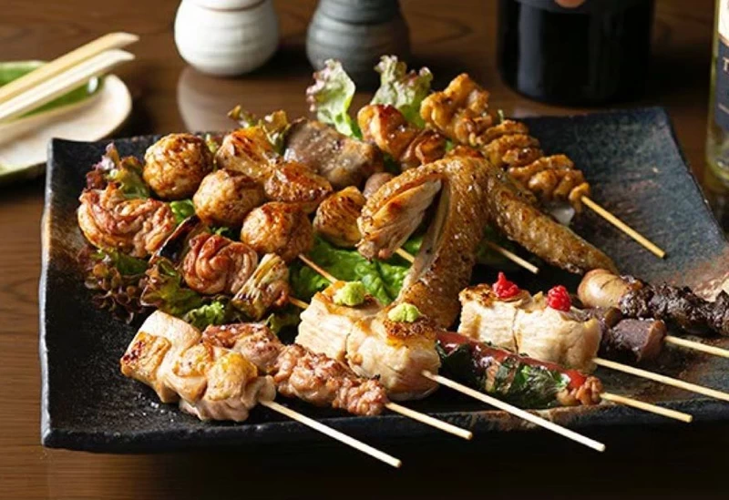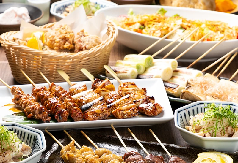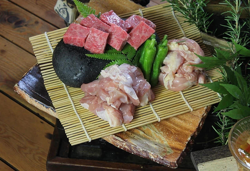 「きらくや」以嚴選新鮮食材製作的炭火料理聞名,從雞肉、京鴨、牛肉到海鮮,都能以炭火慢烤的方式品嚐食材本身的香氣與鮮味。人氣料理「炭火烤雞肉組合」包含雞腿肉、雞頸肉、砂肝、雞心、獅子唐與香菇等多種部位,一次就能享受多樣風味,非常適合喜歡品嚐不同口感的饕客。