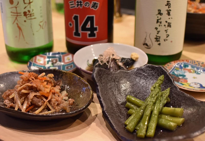 日本酒的品項同樣充足,店內常備的 3 款當地清酒還能一起做成品飲組合,讓客人一次比較不同風味。平日限定的「工作辛苦套餐」則包含 2 杯飲品與 2 道小菜,是下班後想輕鬆小酌的最佳選擇。