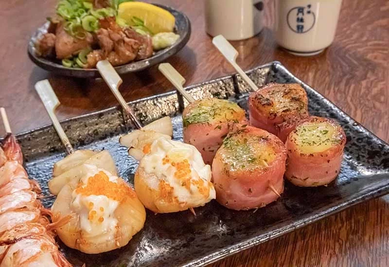 從北野白梅町站步行約 10 分鐘即可抵達的「焼き鳥 伸」,是一家創業至今 28 年、以匠心串燒聞名的居酒屋。店家使用當日現宰的京赤地雞,油脂帶有自然甜味,肉質細緻、口感柔嫩,是其最大特色。除了串燒外,還能享用生雞肉片、炸雞、天婦羅等多種料理方式,讓人能以不同風味品嚐各部位的美味。最後推薦以「雞肉雜炊」作為結尾溫暖身心。店內一樓為吧台座位、二樓是榻榻米座席,無論是一人小酌或與家人朋友同行,都能自在又輕鬆地享受美味時光。