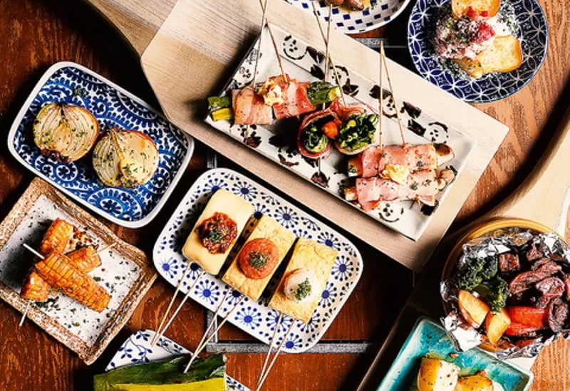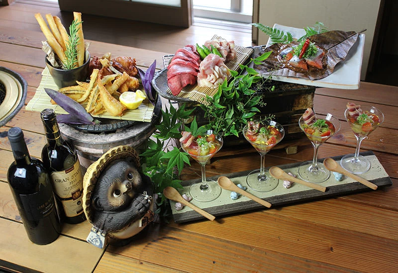 以蒸汽火車為概念、外觀相當吸睛的「ア陸蒸気」,是一家能以炭火品嚐在地美味食材的創意居酒屋。店內料理講究使用舞鶴港直送的新鮮海味、精挑細選的和牛,以及福知山市產的當季蔬菜,菜單豐富多元、充滿巧思。