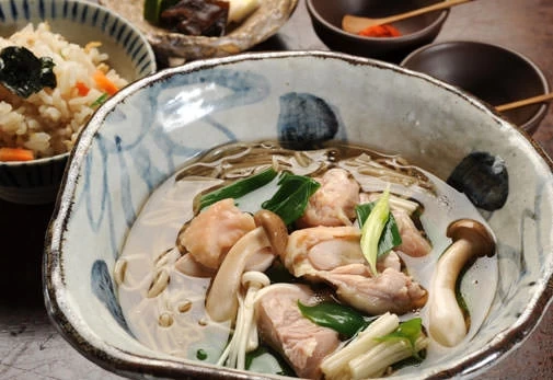 就在二条城正對面的 「蕎麦 たつ市」,是一家能在富有古都風情的京町家中,品嚐精心製作二八蕎麥的餐廳。這裡還能體驗以蕎麥高湯入菜、搭配美酒的獨特飲食文化「蕎麦前」。除了嚴選鴨肉製作的招牌料理「鴨胸肉」與「鴨壽司」,可以從三種高湯中挑選的「鴨鍋套餐」也相當推薦。