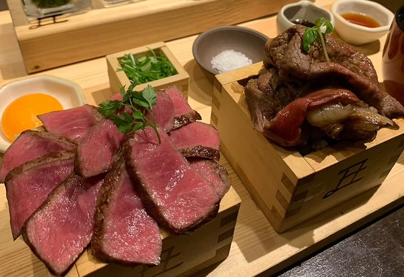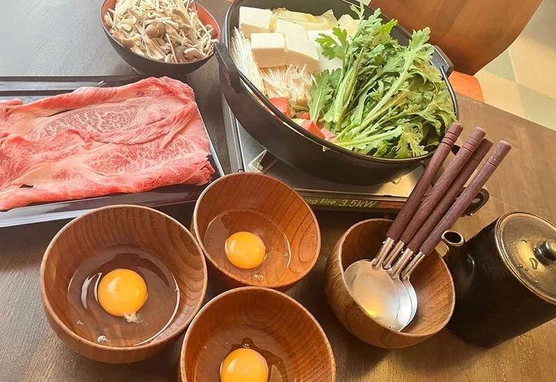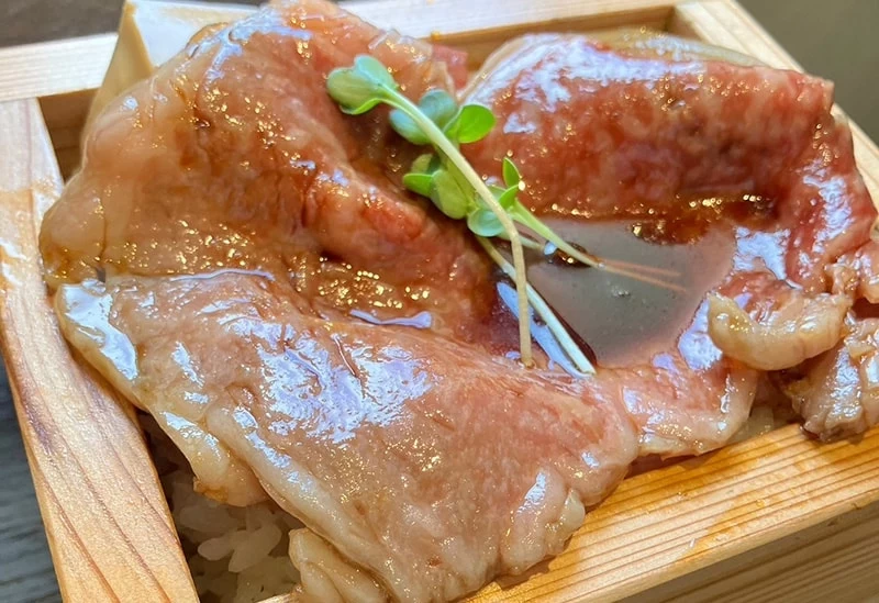 「丑屋 よ平」 以實惠的價格,將源自日本的壽喜燒別出心裁地改以御重盒形式呈現。餐點選擇多樣,其中奢華的「MAS重膳」能同時享受壽喜燒與牛排;「烤牛肉蓋飯三吃」則可加入蔥花、蘿蔔泥等配料,再淋上高湯,變化成茶泡飯的吃法。除此之外,還有能一次品嚐段戶山牛與源氏和牛的「壽喜燒鍋套餐」,以及附有四款季節小菜與湯品的預約限定「壽喜燒手毬壽司套餐」。午餐時段則提供附有御重與京都家常小菜拼盤的超值套餐,讓客人能以實惠價格享受多樣美味。