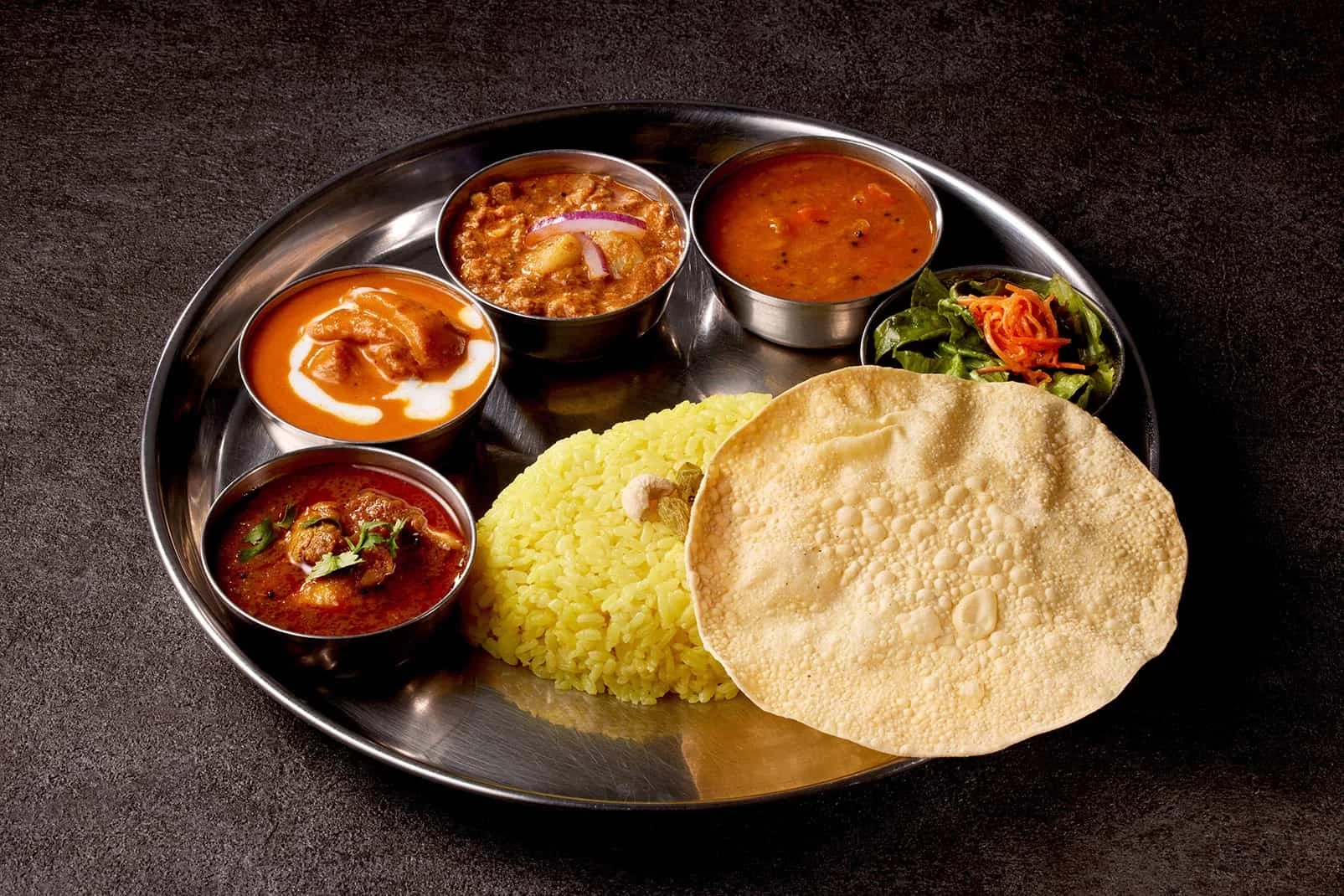 午餐菜單不分平日或假日皆相當划算,是令人開心的一大亮點。晚餐時段則提供烤物、炸物等多款香辣的單點料理,酒類選擇也十分豐富。在充滿異國風情的氛圍中,盡情品嚐道地的南印度咖哩。