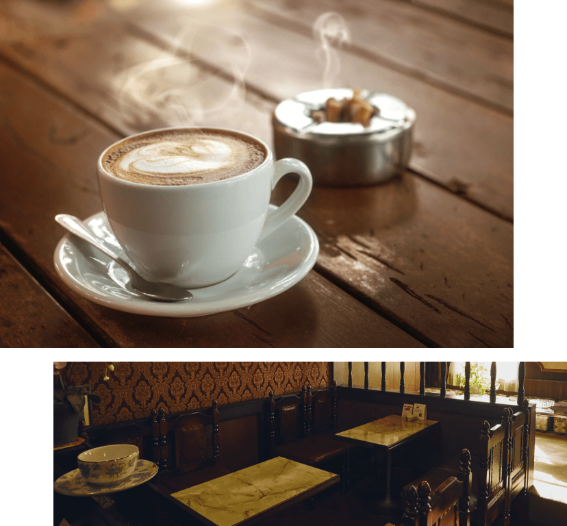 從很久以前開始,咖啡與香菸的絕佳搭配就廣為人知。這種相性極佳的原因,很可能來自咖啡因與尼古丁的相乘效果。喫茶店或咖啡廳通常是人們放鬆、閱讀,或與朋友聊天交流的場所,而在這樣的時光中,咖啡因與香菸正好能幫助提升心情。在時尚的咖啡館裡,一邊品味咖啡、一邊悠閒地吐出煙霧,肯定能讓人更加放鬆自在。