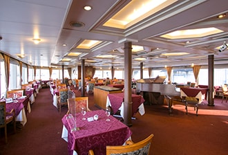 • 主餐廳入口處以季節主題精心佈置的展示迎接來訪旅客,這份細緻入微的款待,也為整段旅程增添一抹溫暖而動人的回憶。