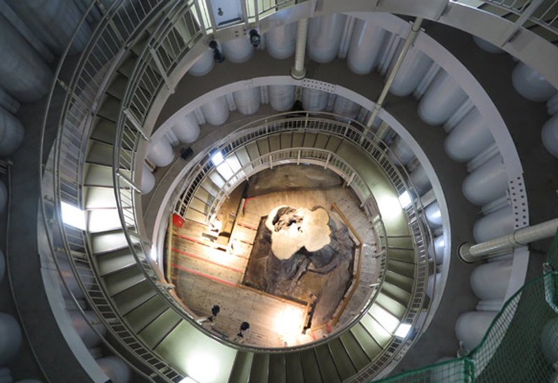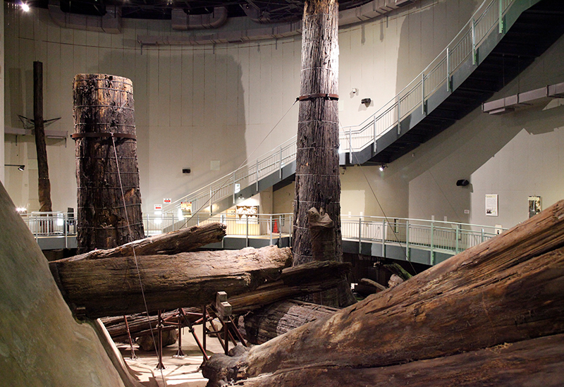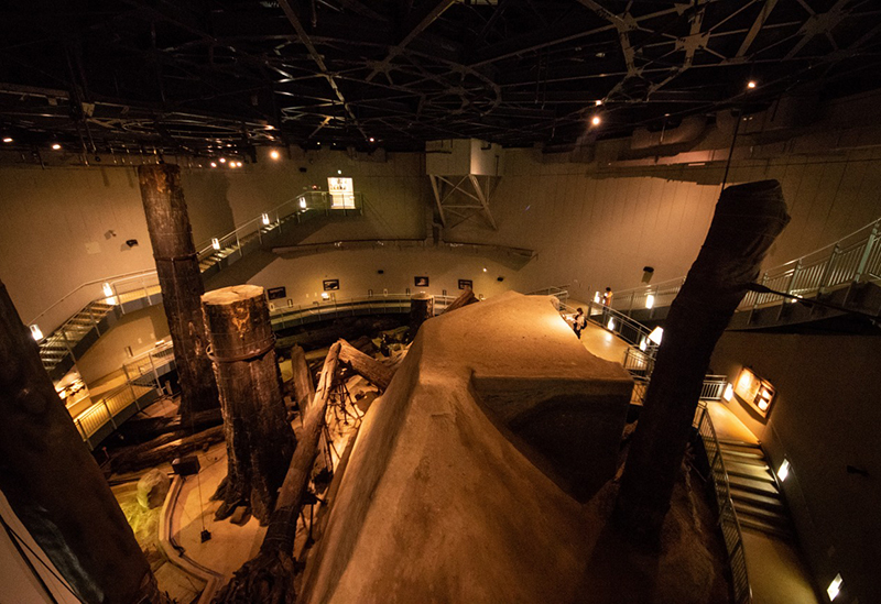 設施內一棟小建築的門一開,走下樓梯,眼前即展現出神秘的異空間,並能感受到古代杉木的香氣。在觀賞著埋藏於地下、保持約4000年前原貌的埋沒林時,不妨遙想古代人們的生活與自然環境。
