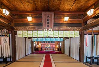 「大前神社」是一座可以得到開運招福之神「大黒天」和「惠比壽」的神緣的神社。神社的社殿建築是從日光東照宮向東國展開的裝飾建築美的先驅。
