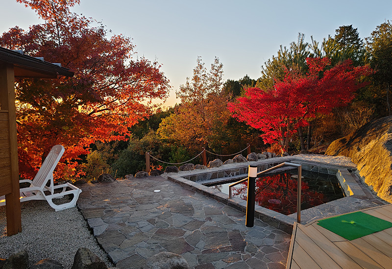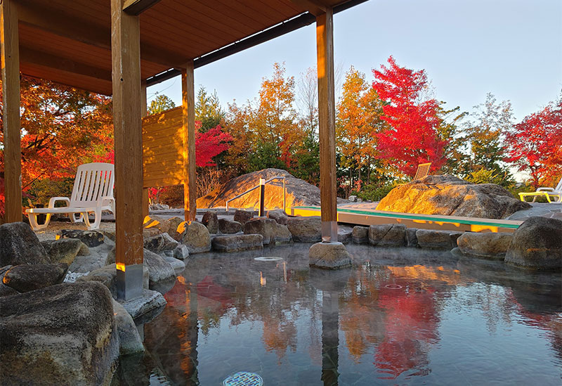 海拔464米高的山頂設施設有觀景露天溫泉、室內大浴場和桑拿等設施。溫泉的刺激很小,質地柔軟的鹼性単純溫泉被稱為“美肌之湯”,無論是小孩還是成人都可以輕鬆享受。