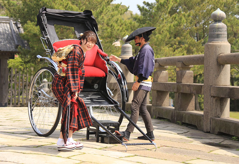 在「揚羽家」,你不僅可以搭乘人力車,還可以親自拉動體驗。這項活動已經納入行程中,您可以在市內漫遊時任何喜歡的時候體驗。不論是大人還是小孩都能享受,所以不妨和家人一起創造獨特的「揚羽家」回憶。