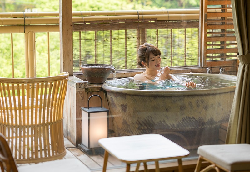 提升免疫力和自然治癒力的溫泉對身體友好,春季賞櫻,夏季賞螢火蟲,秋季賞紅葉以及悠閒地在客房中享受當令的美食和野味料理。遠離日常喧囂,稍微奢侈地享受一次“小型溫泉療養”。
