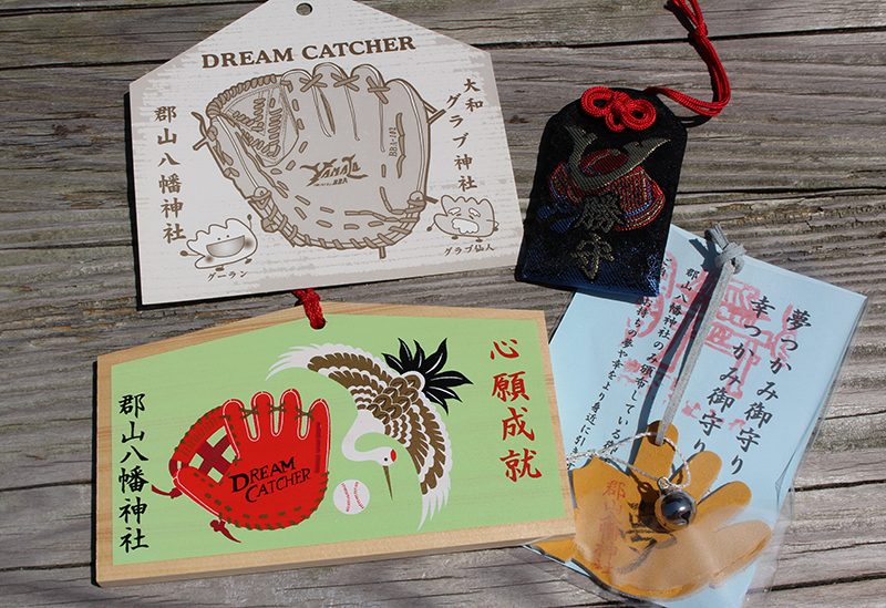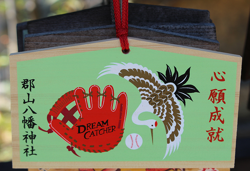 被稱為“棒球手套神社”的神社,各地的棒球選手前來祈禱。這裡還贈送與棒球有關的願望牌和護身符,如刻有武士馬鞭刻的「勝利護身符」,在不僅是棒球比賽,而且是決勝時刻,據說可以蒙受神明「八幡神」的軍事運氣神恩。