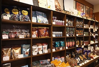 在商店前有可可和巧克力自動販賣機,這裡還有其他地方買不到的稀有商品,選購時能享受樂趣和體驗。店內還有豐富的禮品商品,推薦購買紀念品或禮物。網上商店也很齊全。