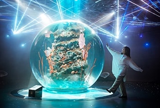 設施的洞穴、精靈森林和宇宙等形象的水族箱中,住著各種生物。這個藝術世界讓人有如置身電影或舞台的一幕般的感覺。