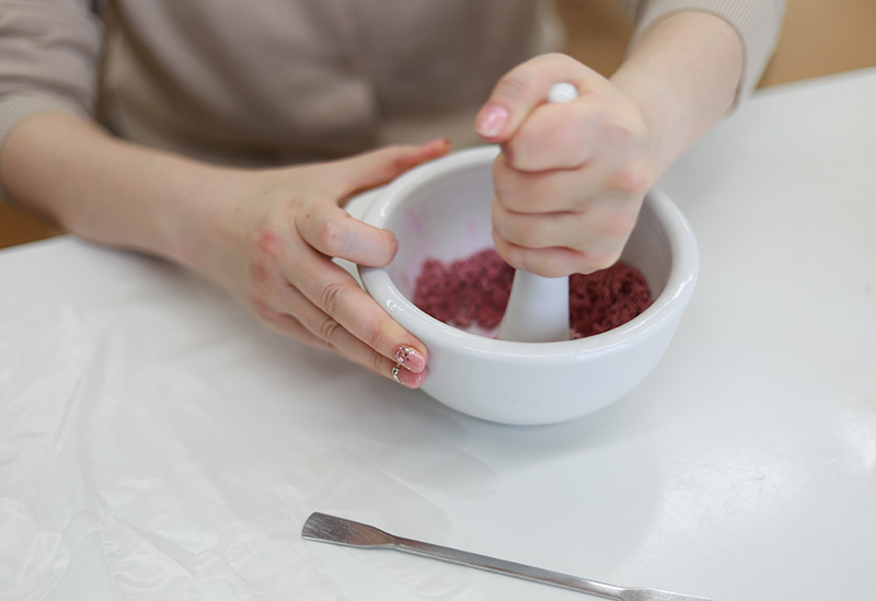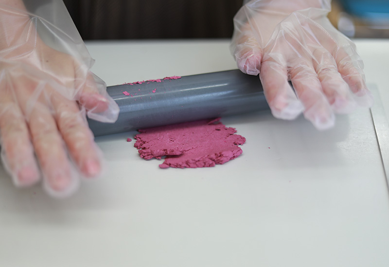 01. 選擇喜歡的香粉顏色,加入水和香料搓揉。