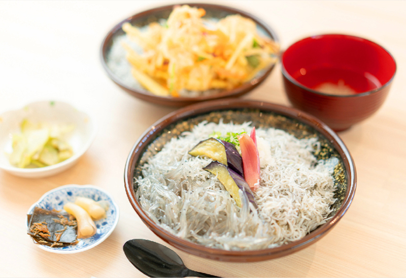 擁有40年以上不斷改良湯底自豪的「鍋焼きラーメンのがろ~」、能享用種類豐富的吻仔魚丼的「安芸しらす食堂」、以當地食材製作出令人印象深刻定食而受歡迎的「市場餐廳 西村商店」等,在餐廳樓層盡情享受美食。