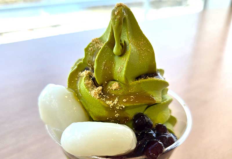 使用當地富山縣產的米粉團子製作的「抹茶聖代」等甜點為主,提供豐富的咖啡廳菜單。在人氣的窗邊個座位,如果時間剛好,可以看到JR冰見線復古的紅色電車通過的景象。