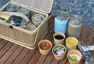 當地・千葉縣山武市的黑毛和牛「山武和牛」、山武郡九十九里町捕獲的新鮮海鮮,以及致力於不依賴化學肥料和農藥農業的「耕作俱樂部」的蔬菜等,可以品嚐到裝在木箱裡的豪華食材附加方案也很受歡迎。住宿者限定的早餐盒組合也很推薦。