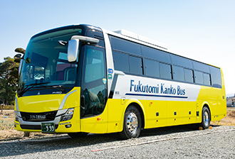 在城下町松本市富有風情的街道上,一輛顯眼的黃色巴士為這裡增添亮麗色彩的「福富觀光巴士」。注重安全,配備了保溫瓶冷藏器和立體卡拉OK等設施,並全面實施病毒防控措施的舒適車輛,讓您享受前往歷史悠久的松本平的巴士旅程。