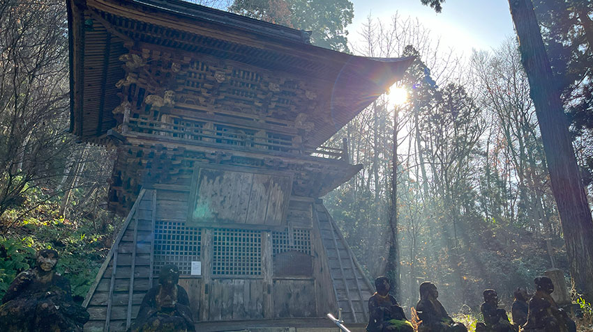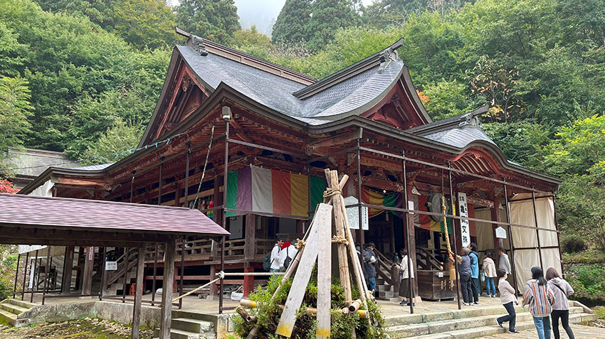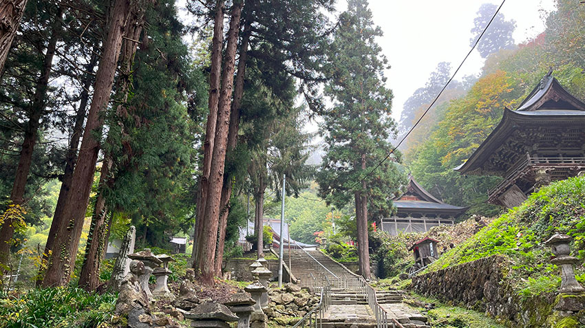 穿過由金剛力士像守護左右的仁王門,往前走會看到於1914年(大正3年)重建的本堂文殊堂。文殊堂由米澤藩醫伊東祐順的次男、確立日本建築學的伊藤忠太設計。文殊菩薩像安置於此,許多參拜者前來祈求學業成就等。文殊堂後方供奉大日如來、普賢菩薩、虛空藏菩薩。大聖寺本坊以大日如來為本尊,安置縣指定文化財的木造聖觀音菩薩立像(有公開展示)及木造如來形立像(未公開展示)。此外,參道旁散布有払川藥師堂、守護一山的藏王權現堂、祈求姻緣的觀音堂等。豐富的自然與歷史的厚重感所營造出的莊嚴氛圍,使拜訪者內心平靜,伽藍成為能以純淨心情參拜的心靈依託。
