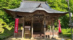 被稱為“龜岡文殊”的日本三文殊之一,正式名稱為松髙山大聖寺,是東北地區特別著名的寺廟。約1200年前,在境內約2萬坪以及境內相連的超過18萬坪的廣大土地上創建。文殊菩薩於宣化天皇第28年,即537年,從中國抵達日本。807年(大同2年),據說在平城天皇的命令下,由奈良東大寺的德一上人擔任住持並遷入此寺。被稱為“智慧的文殊”及“活文殊”,自古以來有傳說稱“連續參拜3年必定能獲得良好的智慧,孩子能健康成長,子孫能誕生優秀人士,身體健康堅固,能除厄運,家宅平安,商業繁榮以及交通安全”。特別受到想要通過考試或努力讀書者的守護神的歡迎,不僅來自東北各地,還有許多來自關東、關西及北海道的人前來參拜。