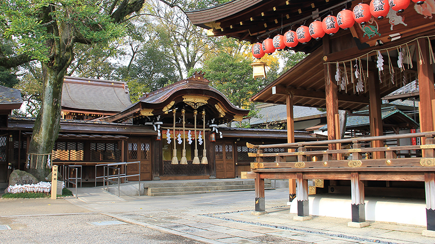 - 創祀於京都市洛西的高雄山。1886年(明治19年)遷座至位於「京都御所」西側的現址。