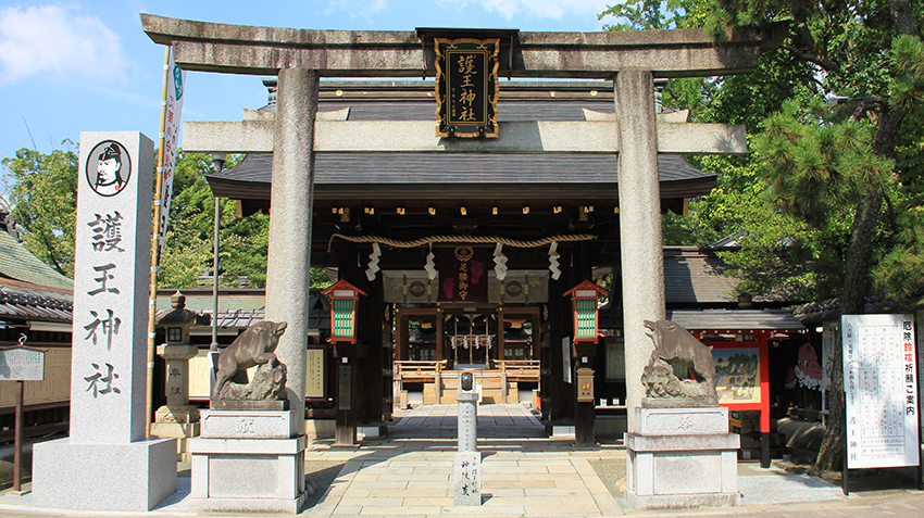護王神社供奉了守護皇統,致力於平安京建都的和氣清麻呂公命及其姊姊和氣廣蟲姬命作為主祭神。過去鎮座於「高雄山 神護寺」的境內,但於1886年(明治19年)因明治天皇的勅命,遷移至現今位於「京都御所」西側的地點。供奉與清麻呂公緣分深厚的靈豬像,因而也被親切稱為“野豬神社”。此外,根據故事,深信其有保護足腰的靈驗,吸引眾多善男信女從全國各地前來參拜。