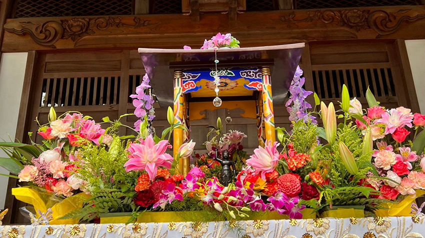 寺廟境內盛開滿滿的花朵,靜謐的寺院被春天染上色彩。每年五月上旬,在以花手水和花飾裝點的「徳星寺」舉行例行的「花祭典」。這一天是為了慶祝釋迦牟尼佛的誕生,花香彌漫,清新的空氣瀰漫於寺廟境內,當地居民與遠方來訪的參拜者齊聚一堂,成為充滿活力的一天。「花祭典」限定御朱印頒布及特別的花手水之外,還有念珠和土耳其燈的工坊、賓果遊戲會、與迷你馬互動體驗等,全家人都能享受的活動也會同時舉行。攤位與廚房車齊聚,就像小型的廟會一般熱鬧,傳統的祈禱與符合現代的華麗氛圍融為一體,展現出如「春天佛陀花園」的景象。繼續推動對地方開放的活動,致力成為帶來日常安心感與靜謐感動場所的「徳星寺」春季風物詩,邀請您參與,共度被花與人情溫暖包圍的一天。