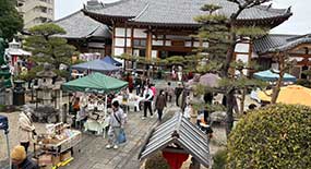1945年1月的三河地震中,失去了木造的茶所、觀音堂、水屋、鐘樓堂、後門、圍牆,此外1959年的伊勢灣颱風使開山堂倒塌。同時約有20棵老松樹倒伏。加上災害及近年的都市開發,境內的景觀已大幅改變。然而有許多看點,包括弘法大師手持鯖魚的石佛「鯖大師」、1754年(寶曆4年)建造的「法華經一千部誦讀塔」、1813年(文化10年)的「西國三十三觀音」、1830年(天保元年)的「潑水地藏尊」等多尊佛像皆安置於此。此外,在「修行大師像」周圍設有「本四國踏砂靈場」,在標有編號的位置放有四國靈場的砂,信眾可踩踏參拜。弘法堂右側安置的「厄除弘法大師」每年舉行更換袍服的更衣式,這是一種罕見的法會。