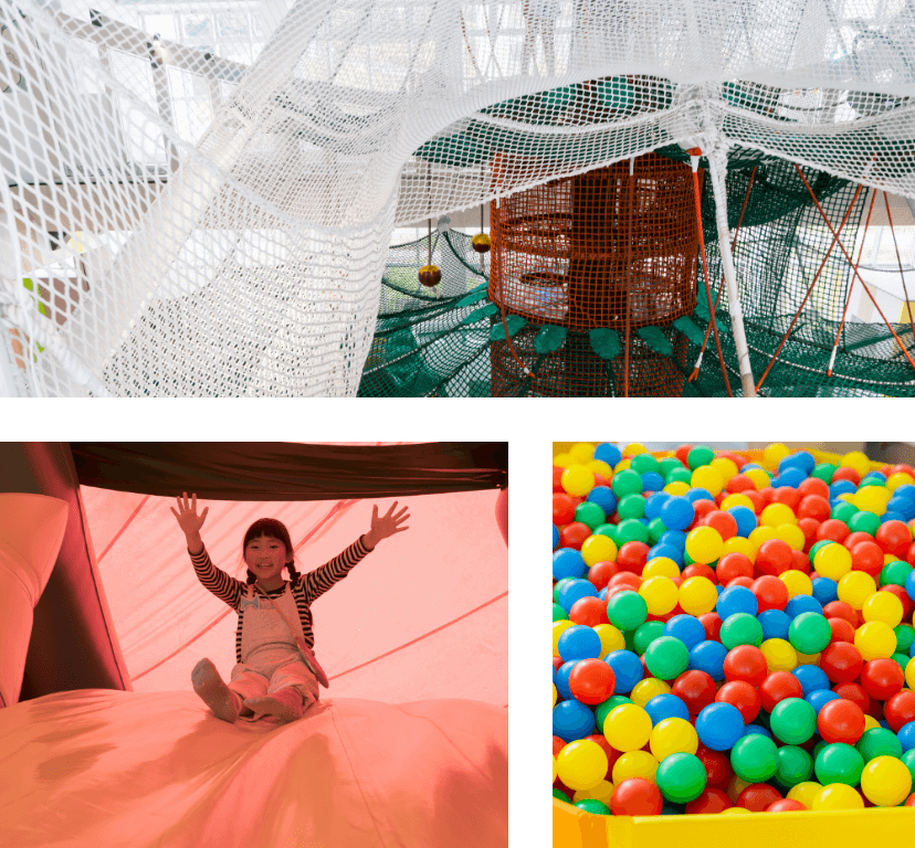 在多樣化的運動冒險設施中,需要用到全身動作,例如攀爬、奔跑、鑽爬、抓握、跳躍等等。因為必須動用全身,所以能在享受樂趣的同時,自然而然培養平衡感。對大人來說,也能有效舒緩日常的運動不足。