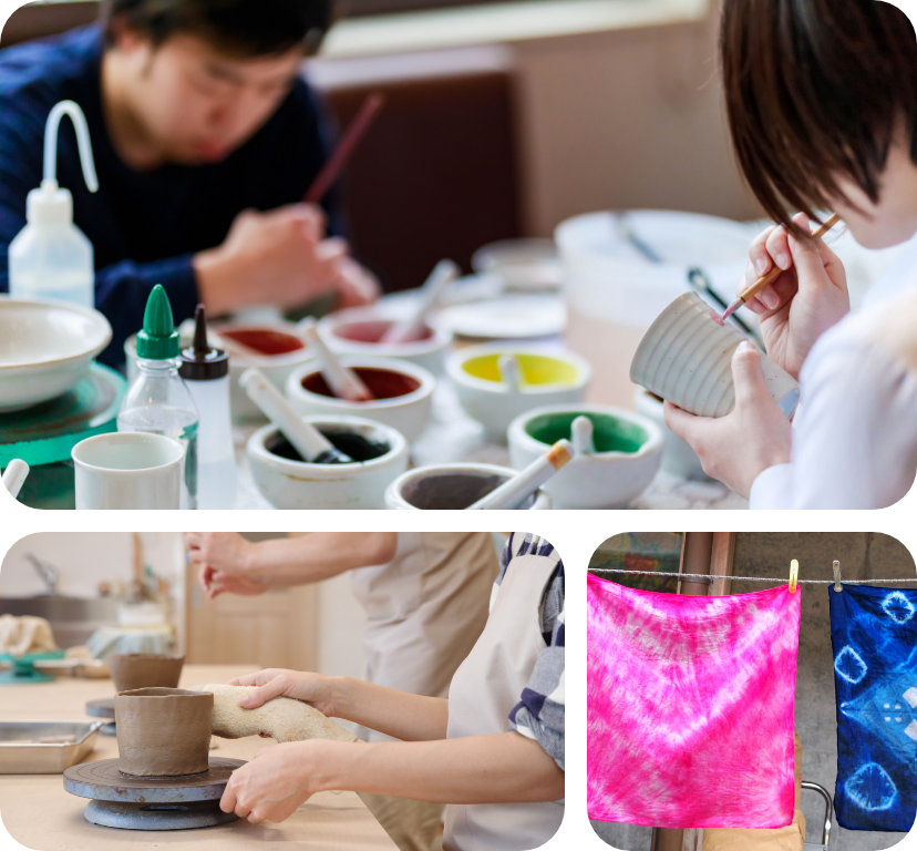 原本是一家主要生產排水管和花盆的工廠,現在以“看、做、品嚐、購買”作為概念,提供當地特產常滑燒的銷售和陶藝體驗等服務的綜合設施。可以選擇「繪畫課程」「手捏課程」「電動陶盤課程」中的一個陶藝體驗,不僅可以製作旅行的回憶,也非常適合作為紀念品。