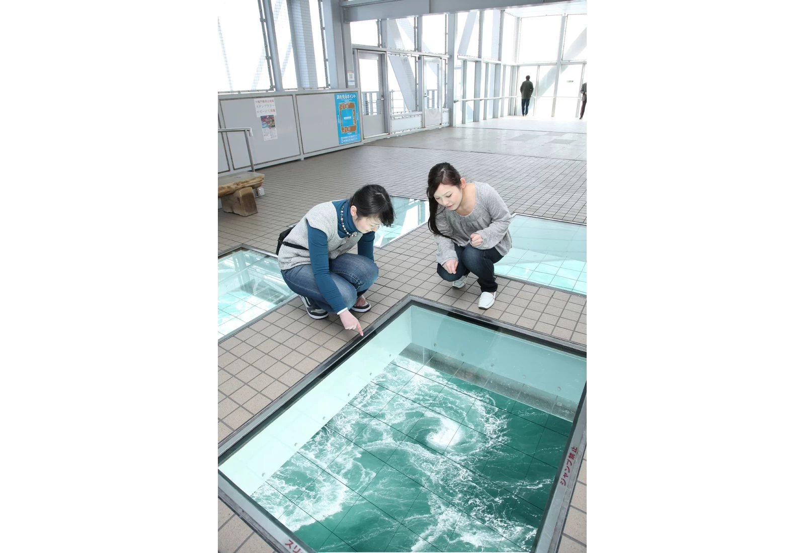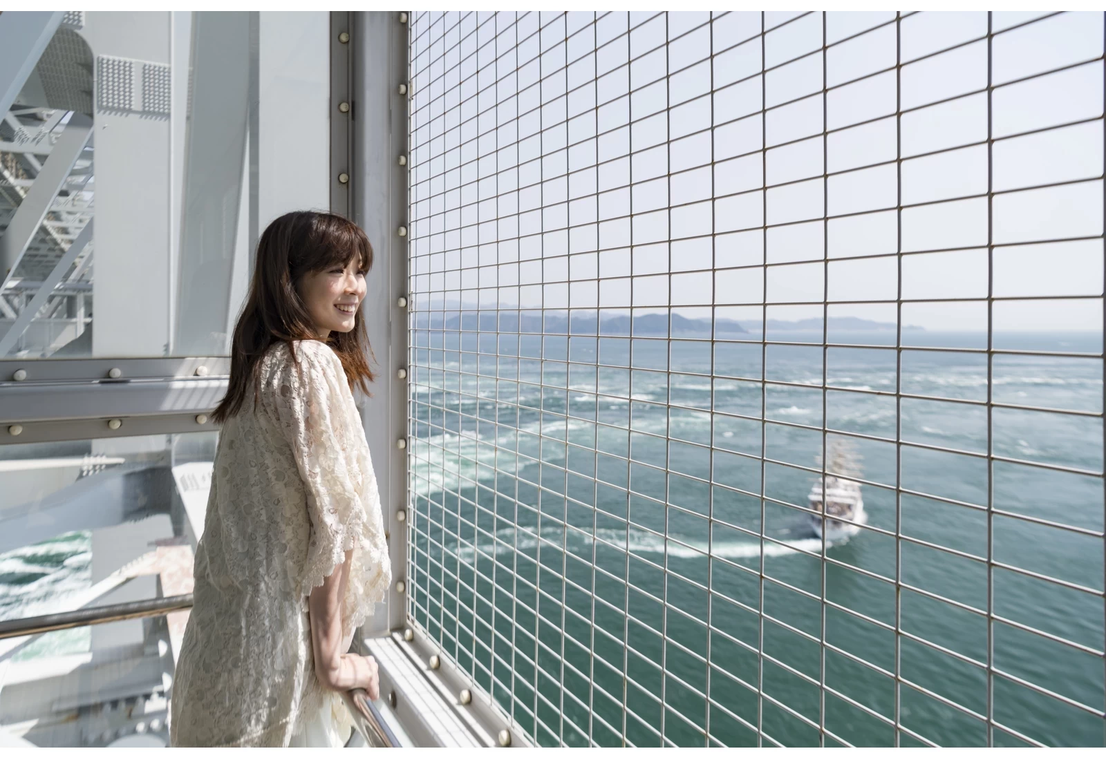 「德島縣立 渦之道(大鳴門橋遊步道 渦之道)」是設置於大鳴門橋橋桁內、距離海面約 45 公尺高的海上遊步道,全長約 450 公尺。漫步其間,能一邊感受鳴門海峽迎面而來的海風與浪聲,一邊將瀨戶內海與太平洋交會而成的壯闊景色盡收眼底。步道盡頭設有展望室,透過玻璃地板,還能近距離俯瞰被列為「世界三大潮流」之一的鳴門漩渦,震撼力十足。